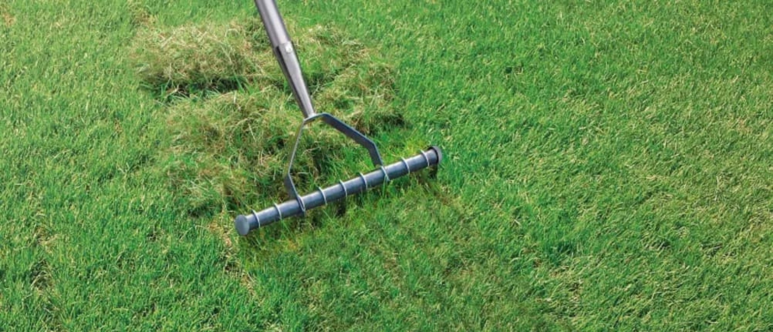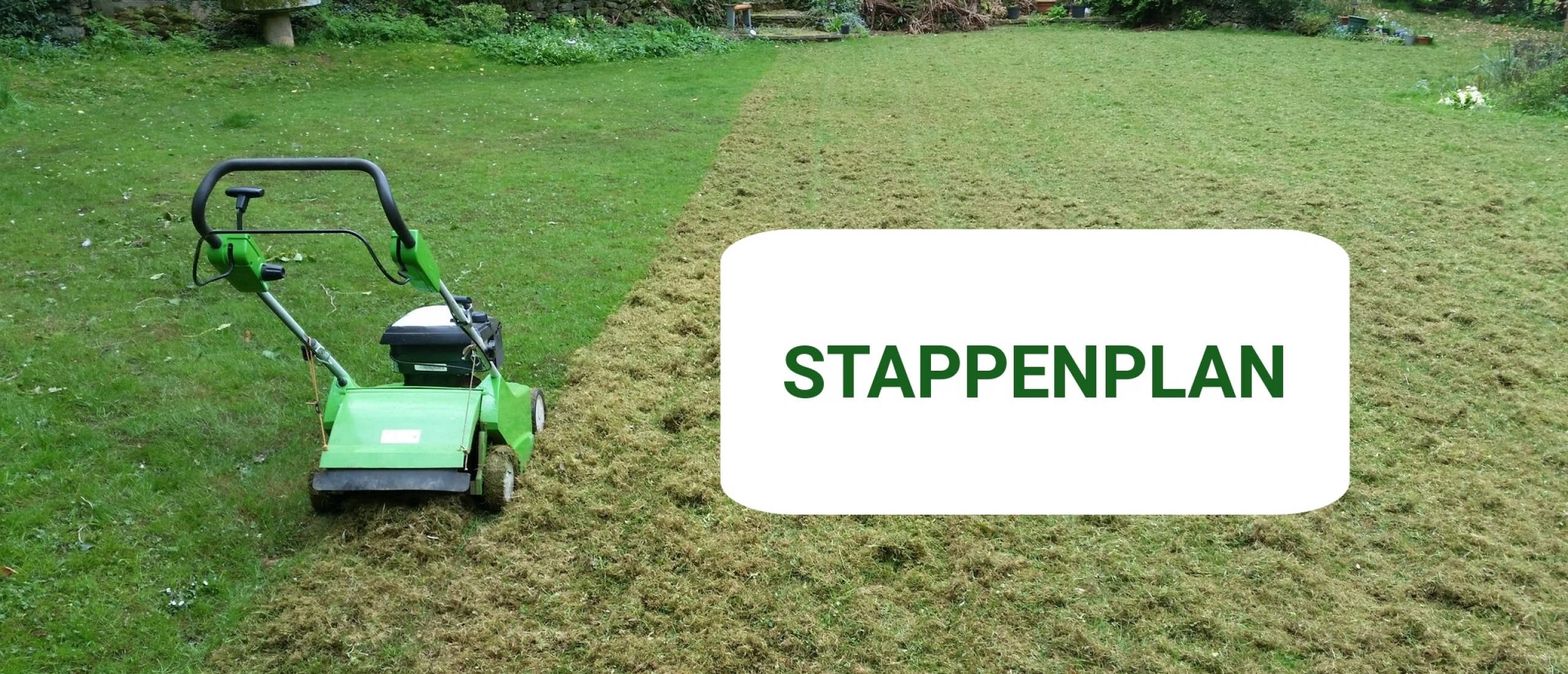 Na een paar weken kun je beginnen met verticuteren. Dit kan met een verticuteermachine of met een verticuteerhark. De messen van de machine snijden licht in de bovenste laag van de bodem en trekken mos en vilt naar boven.